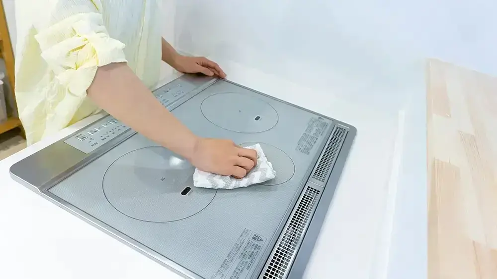 フラットなトッププレートにより、拭くだけで簡単に掃除が完了。五徳周りのフラットさも保たれています。